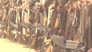 شهدت عزلة رجام الأعلى بمديرية بني حشيش بمحافظة صنعاء، اليوم، عرضاً شعبياً مهيباً تمثل في مسير راجل ووقفة مسلحة لخريجي دورات التعبئة العامة “طوفان الأقصى”.