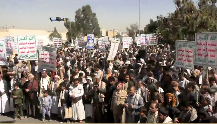 صنعاء تجدد إعلان الاستقلال: مسيرة كبرى أمام السفارة الأمريكية تخليداً لذكرى طرد “المارينز” وكسر قيد الوصاية