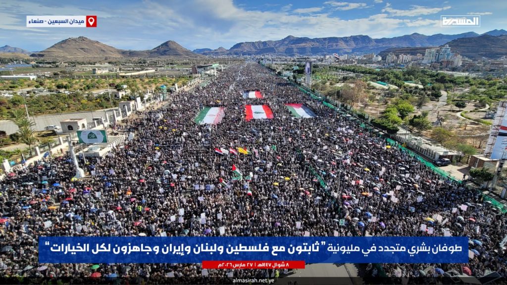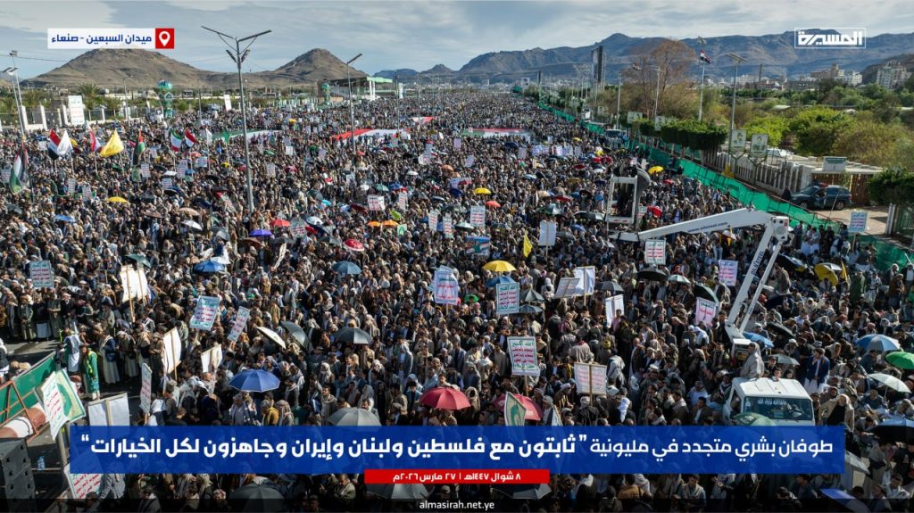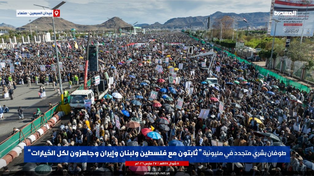 الجهوزية والتفويض: جددت الحشود تفويضها المطلق لقائد الثورة، السيد عبدالملك بدر الدين الحوثي، لاتخاذ ما يراه مناسباً من خيارات عسكرية وسياسية، مؤكدين أن “الأيادي على الزناد” وأن الشعب اليمني مستعد لخوض معركة الأمة المقدسة حتى تحقيق النصر وتطهير المقدسات.