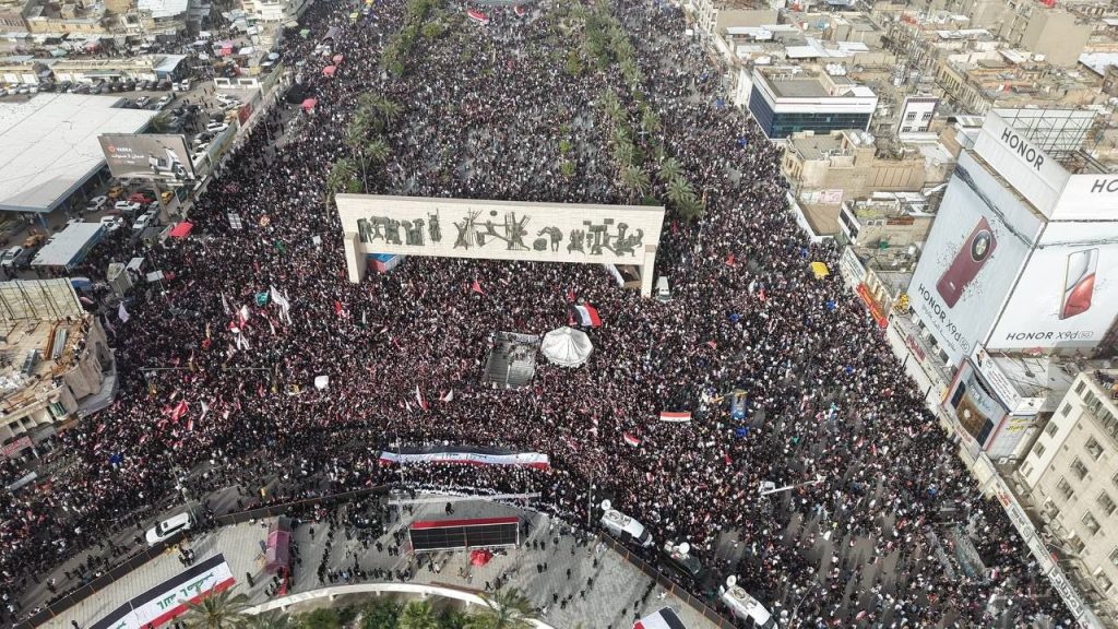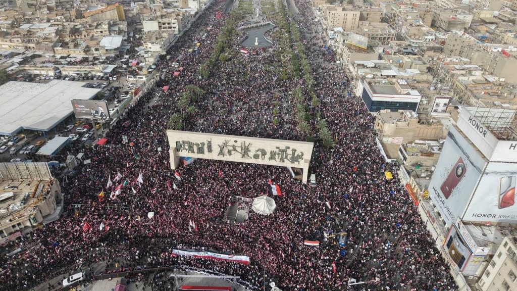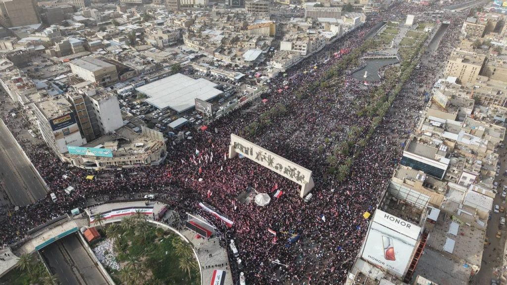 طوفان بشري يغمر “ساحة التحرير”: بغداد تنتفض بمليونية حاشدة تنديداً بالعدوان الأمريكي – الإسرائيلي