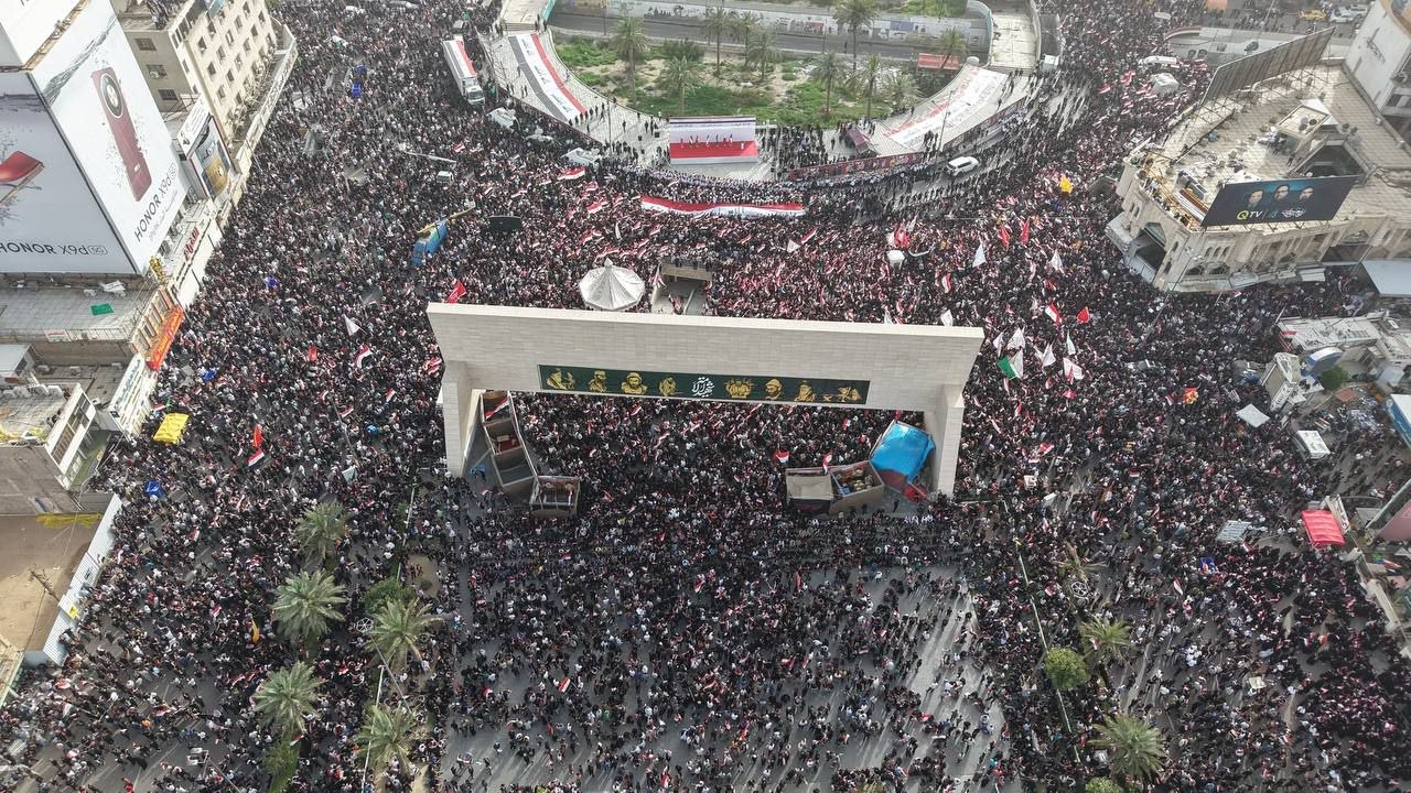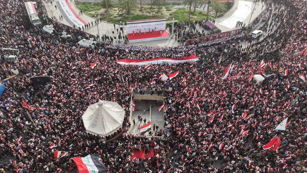 طوفان بشري يغمر “ساحة التحرير”: بغداد تنتفض بمليونية حاشدة تنديداً بالعدوان الأمريكي – الإسرائيلي