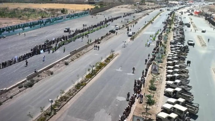 نظم أبناء قبيلة بني الحارث بمديرياتها الثلاث (بني الحارث، شعوب، الثورة) في أمانة العاصمة، اليوم، لقاءً قبلياً مسلحاً واسعاً، تأكيداً على الجهوزية العالية لمواجهة الأعداء، ومباركةً للانتصارات التاريخية للجمهورية الإسلامية في إيران، وإحياءً لذكرى الصرخة في وجه المستكبرين.
