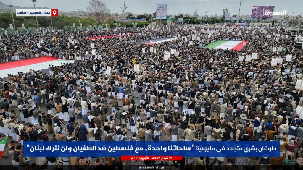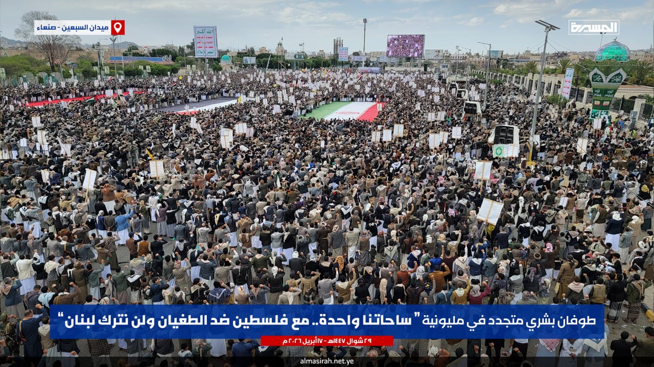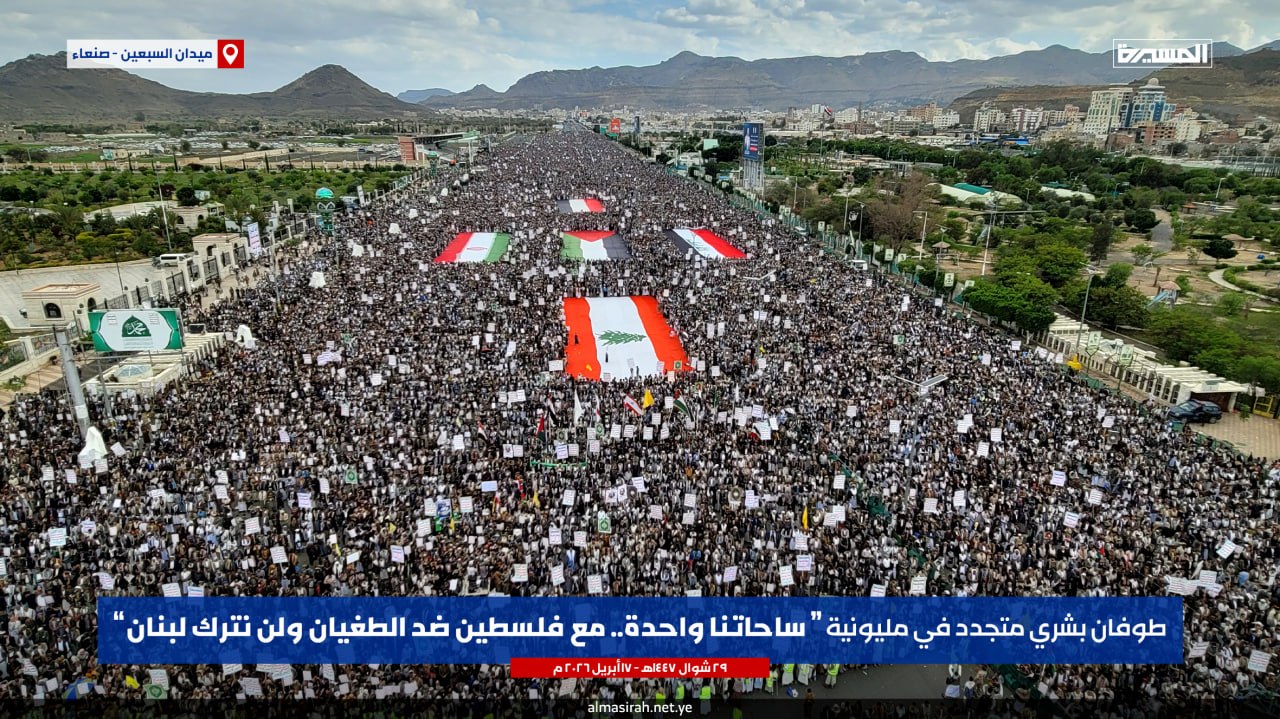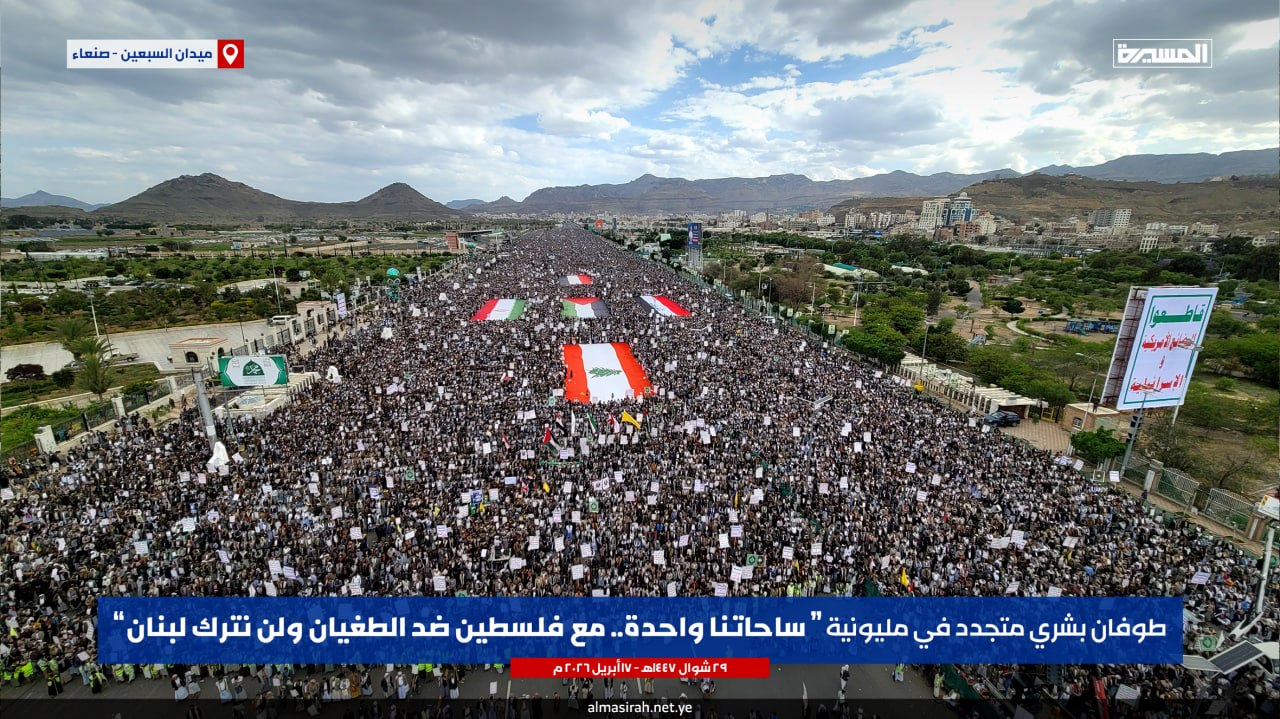 طوفان بشري بالعاصمة صنعاء في مسيرة “ساحاتنا واحدة”: يمن الأنصار يُعلن الجهوزية الكاملة لمواجهة “إسرائيل الكبرى”