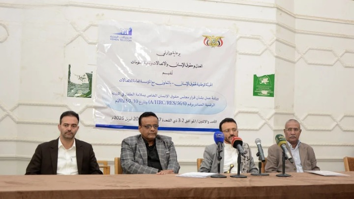 دشنت الهيئة الوطنية لحقوق الإنسان بصنعاء، اليوم، ورشة عمل تخصصية لمناقشة “قرار مجلس حقوق الإنسان الأممي الصادر في يوليو 2024م بشأن سلامة الطفل في البيئة الرقمية”، بمشاركة 30 خبيراً يمثلون 20 جهة حكومية وأهلية، وبدعم من وزارتي “العدل وحقوق الإنسان” و”الاتصالات وتقنية المعلومات”.