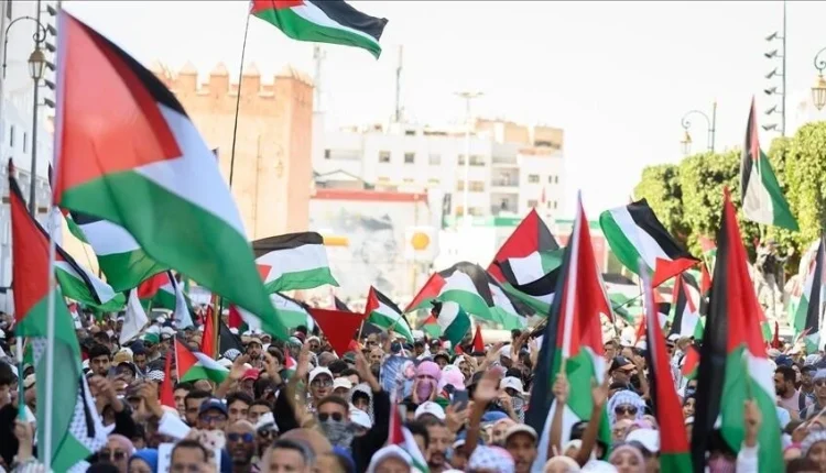 المسيرة التي دعت إليها “مجموعة العمل من أجل فلسطين” وهيئات مدنية أخرى، انطلقت من “باب الحد” التاريخي وصولاً إلى مبنى البرلمان، حيث التقت وفود شعبية من مختلف المدن المغربية.