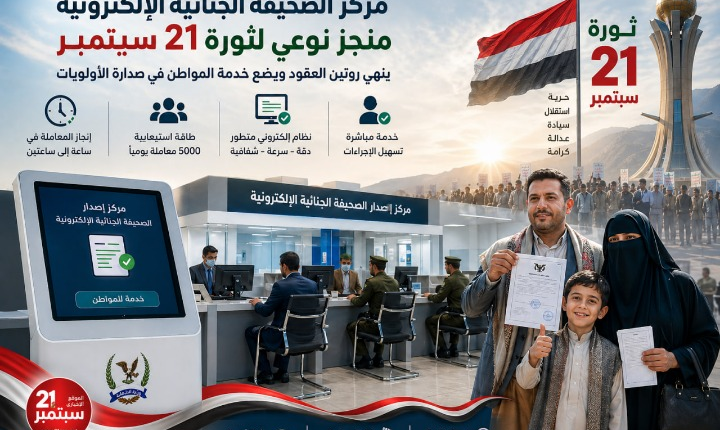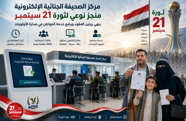 مركز الصحيفة الجنائية الإلكترونية.. منجز نوعي لثورة 21 سبتمبر ينهي روتين العقود ويضع خدمة المواطن في صدارة الأولويات