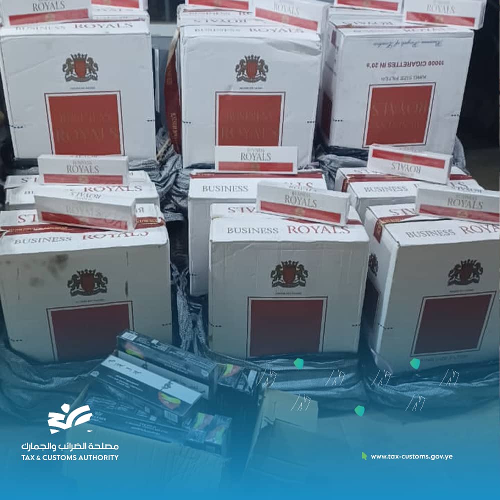 وفي ضبطية أخرى بجمرك رقابة ذمار ، تمكنت فرق الضابطة الجمركية من ضبط 30 كرتونًا من السجائر البريطانية، بالإضافة إلى كرتون يحتوي على أدوات شيش إلكترونية من منشأ الإمارات العربية المتحدة، كانت في طريقها للتهريب بالمخالفة للقوانين واللوائح المنظمة.