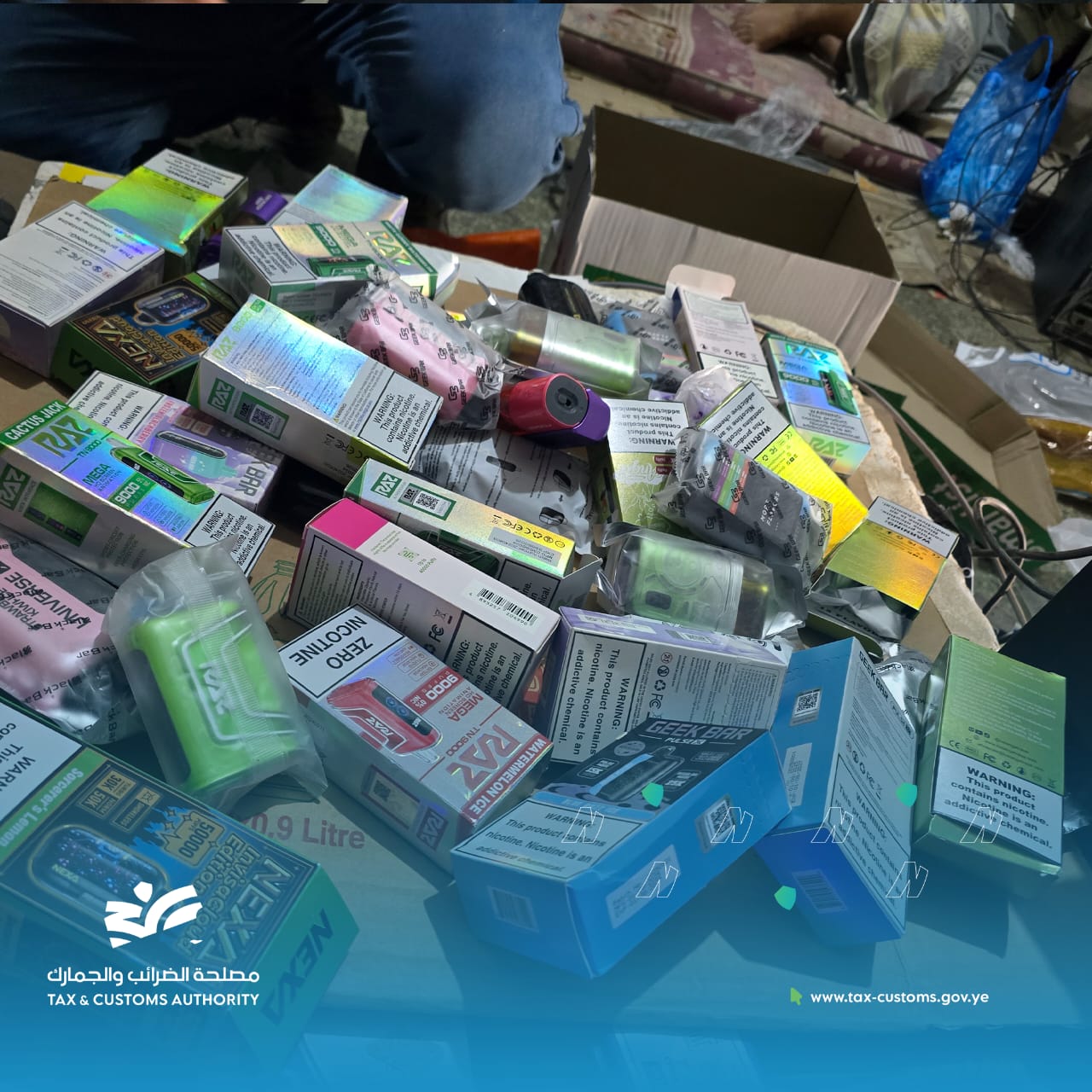 تمكنت الضابطة الجمركية في مركز الراهدة الجمركي بالتعاون مع الاجهزة الامنية من ضبط كمية من أدوات الشيش كانت بحوزة عدد من المسافرين القادمين من الولايات المتحدة الأمريكية، في محاولة لإدخالها بطرق مخالفة للإجراءات القانونية المعمول بها.