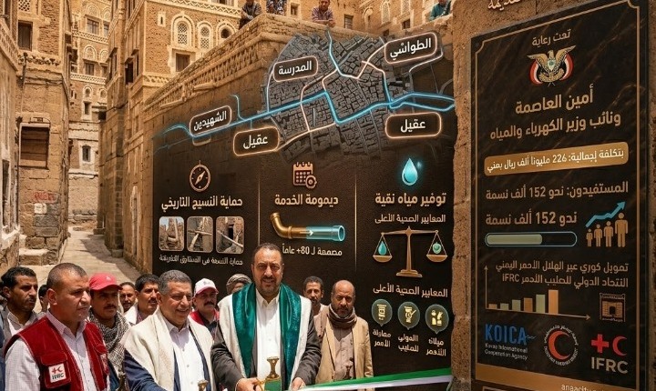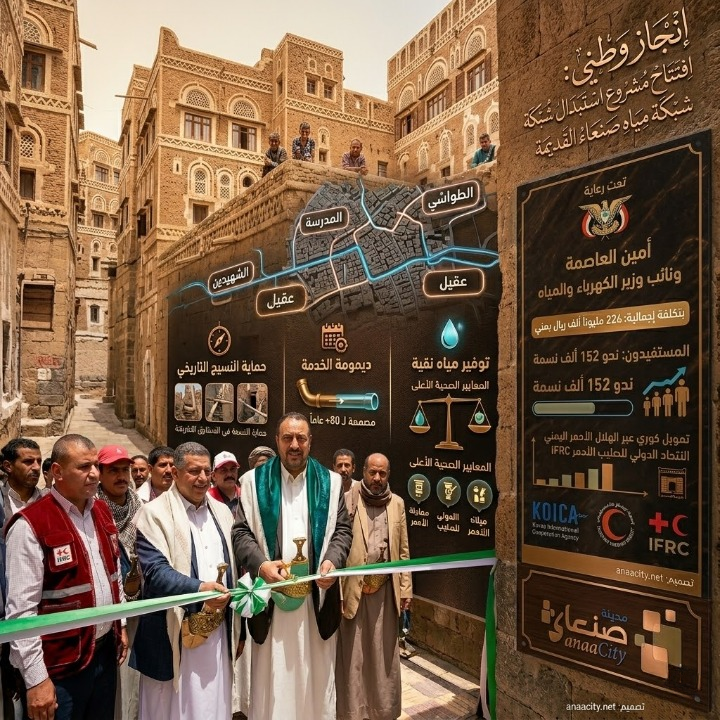وبدوره، أوضح مدير مؤسسة المياه بالأمانة، المهندس محمد مداعس، أن المؤسسة اعتمدت استراتيجية “النطاقات الصغيرة” في تنفيذ المشروع لضمان الدقة وفق التمويلات المتاحة، مؤكداً أن العمل مستمر حتى تغطية كافة حارات صنعاء القديمة لتقديم خدمة آمنة والحفاظ على الواجهة الحضارية للعاصمة.