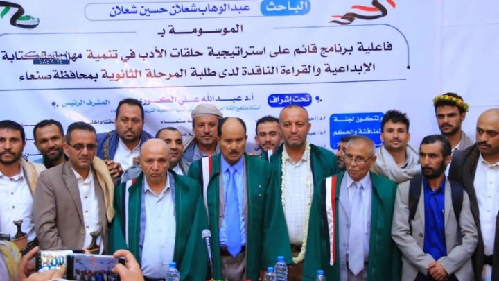 شهدت جامعة صنعاء، اليوم، مناقشة علنية لأطروحة الدكتوراه المقدمة من الباحث عبدالوهاب شعلان حسين شعلان، والموسومة بـ “فاعلية برنامج قائم على استراتيجية حلقات الأدب في تنمية مهارات الكتابة الإبداعية والقراءة الناقدة لدى طلبة المرحلة الثانوية بمحافظة صنعاء”.